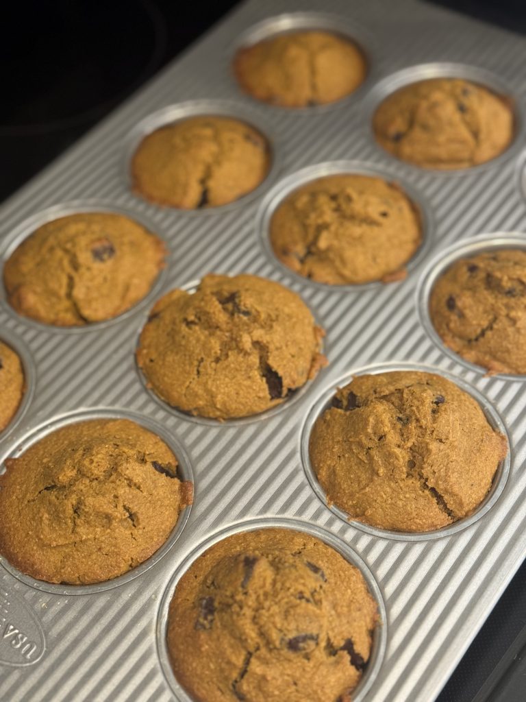 • Fresh Milled Flour Chocolate Chip Pumpkin Muffins