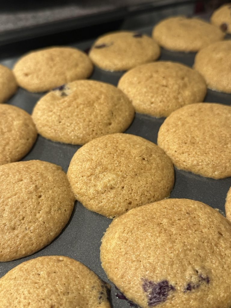 • To help prevent your muffins from sticking, add a TBSP or so of the batter without blueberries to the bottom of each muffin tin.